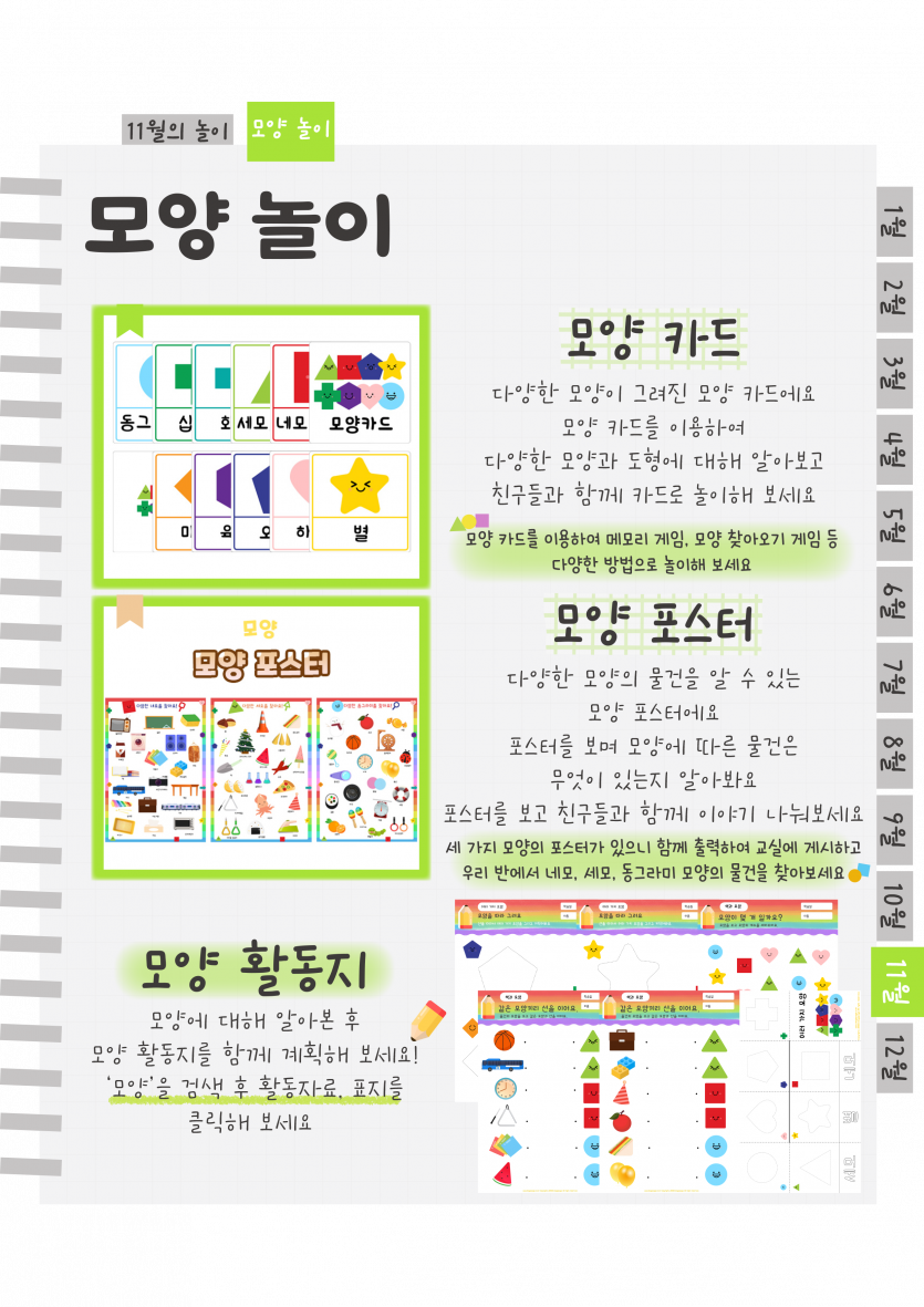 11월 환경과 생활, 색깔과 모양 놀이를 소개합니다:)