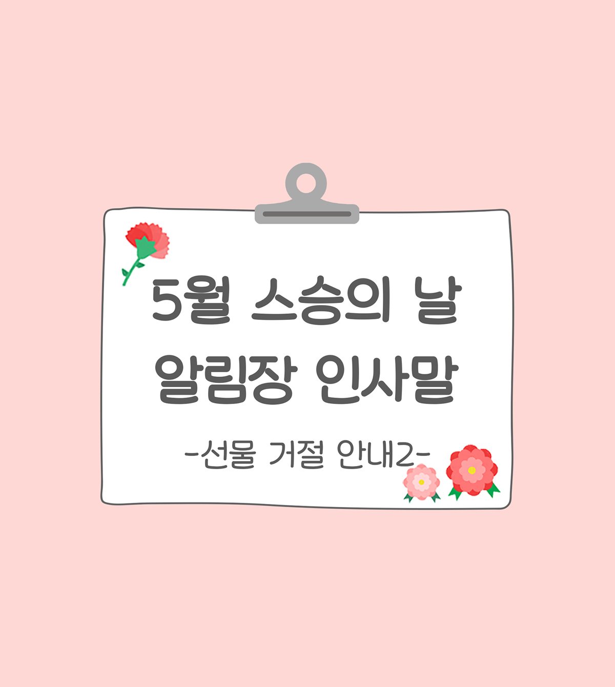 태그 : 스승의날알림장인사말, 알림장, 스승의날, 스승의날알림장, 선물, 스승의날선물, 선물거절, 선물거절안내, 알림장인사말, 가정통신문, 가통, 5월15일, 행사, 행사인사말, 행사안내, 안내.