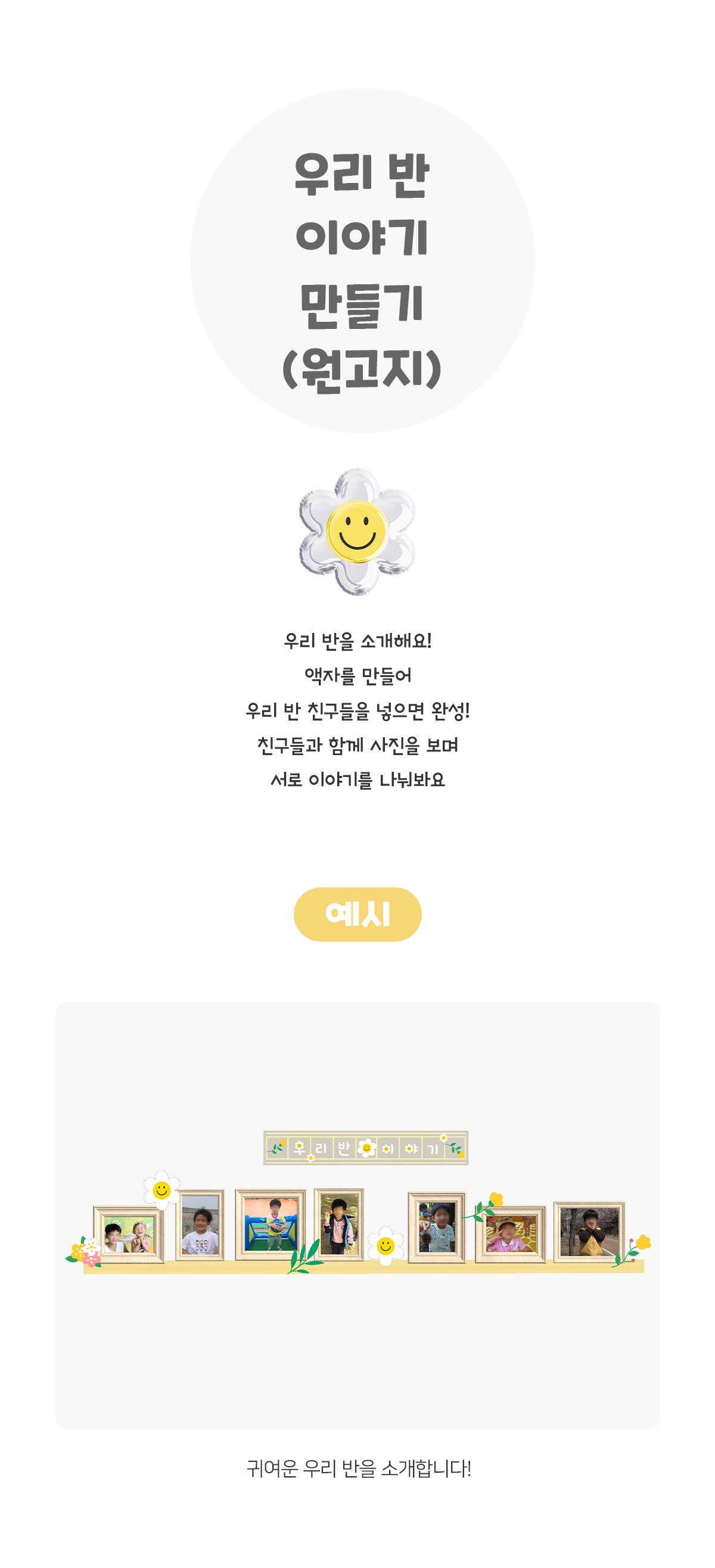 태그 : 우리반이야기만들기, 우리반이야기원고지만들기, 데이지꽃원고지, 우리반이야기, 우리가족이야기, 추억사진관, 우리반액자, 가족액자, 사진, 카메라, 추억, 데이지꽃, 생활도구, 앨범, 전시회, 사진관, 우리가족이야기만들기, 성장, 졸업, 입학, 새학기, 신학기, 수료.