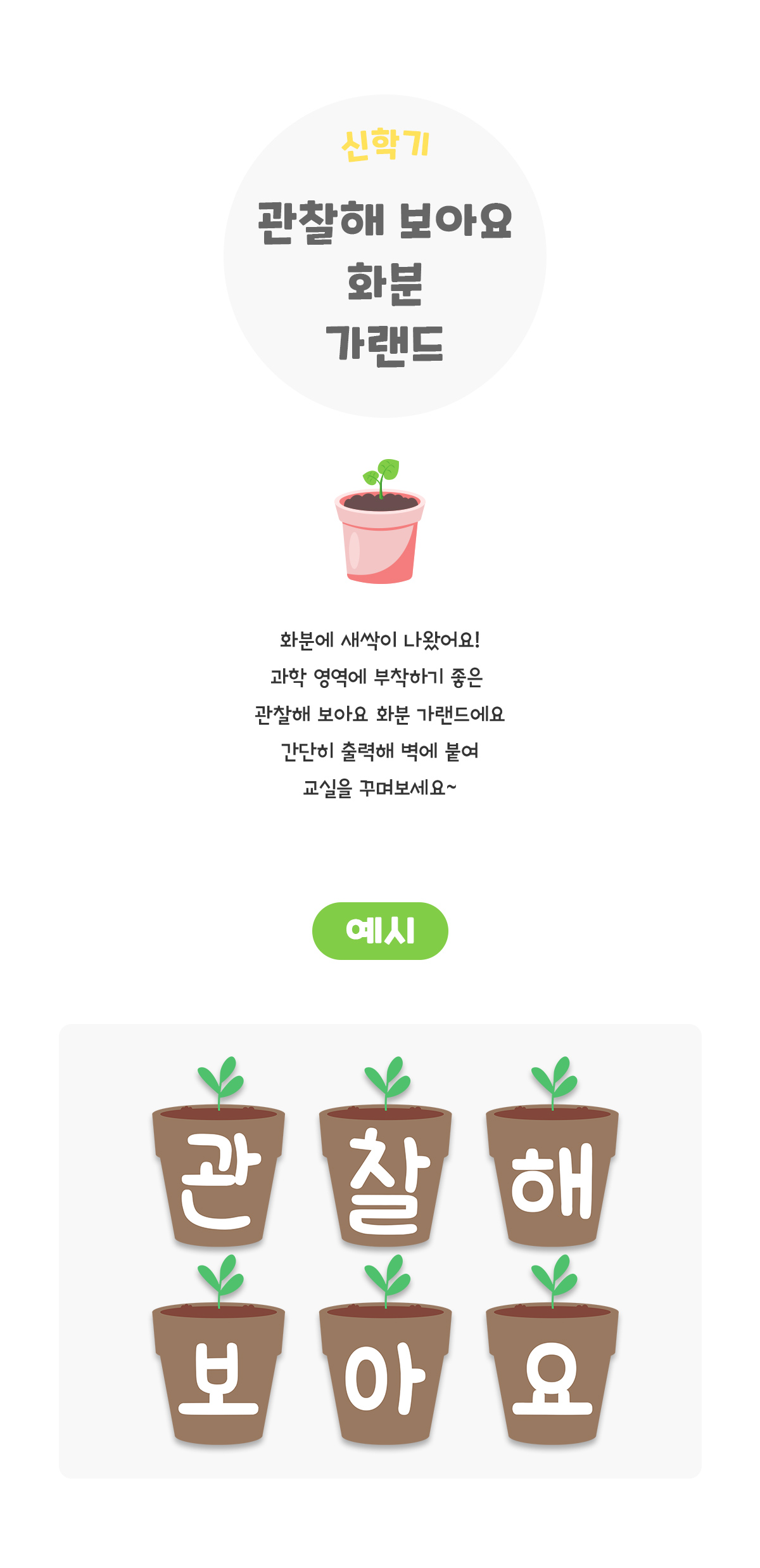 태그 : 관찰해보아요화분가랜드, 새학기, 신학기, 어린이집, 유치원, 입학, 새학기준비, 신학기준비, 환경구성, 환경판, 관찰해보아요, 게시판, 과학영역, 탐색영역, 관찰활동.