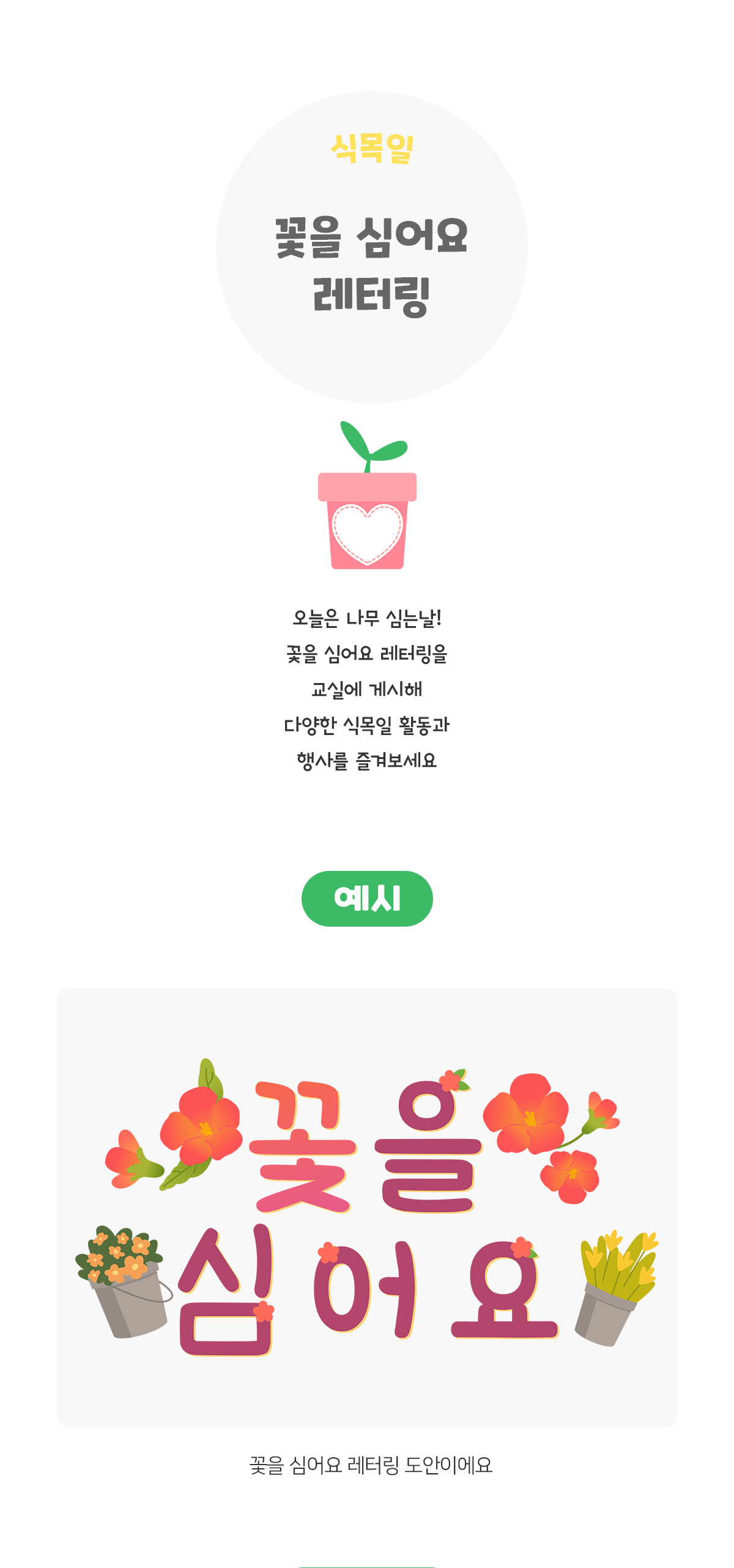 태그 : 꽃을심어요레터링, 봄, 봄환경, 봄활동, 봄놀이, 봄과동식물, 자연, 자연물, 식목일, 나무, 나무심기, 나무사랑, 4월5일, 나무심는날, 텃밭, 텃밭활동.