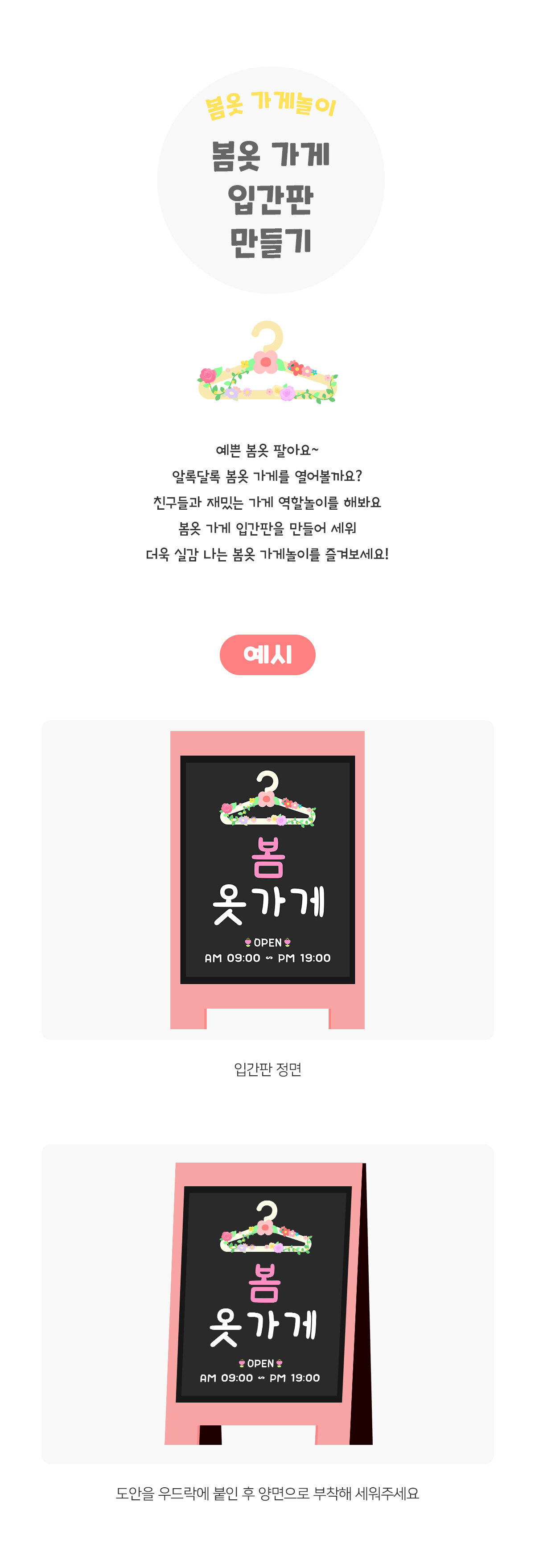 태그 : 봄옷가게입간판만들기, 봄, 계절, 봄옷가게, 봄옷가게놀이, 가게놀이, 우리동네, 세탁소놀이, 역할놀이, 옷, 모자, 긴팔, 바지, 치마, 신발, 양말.