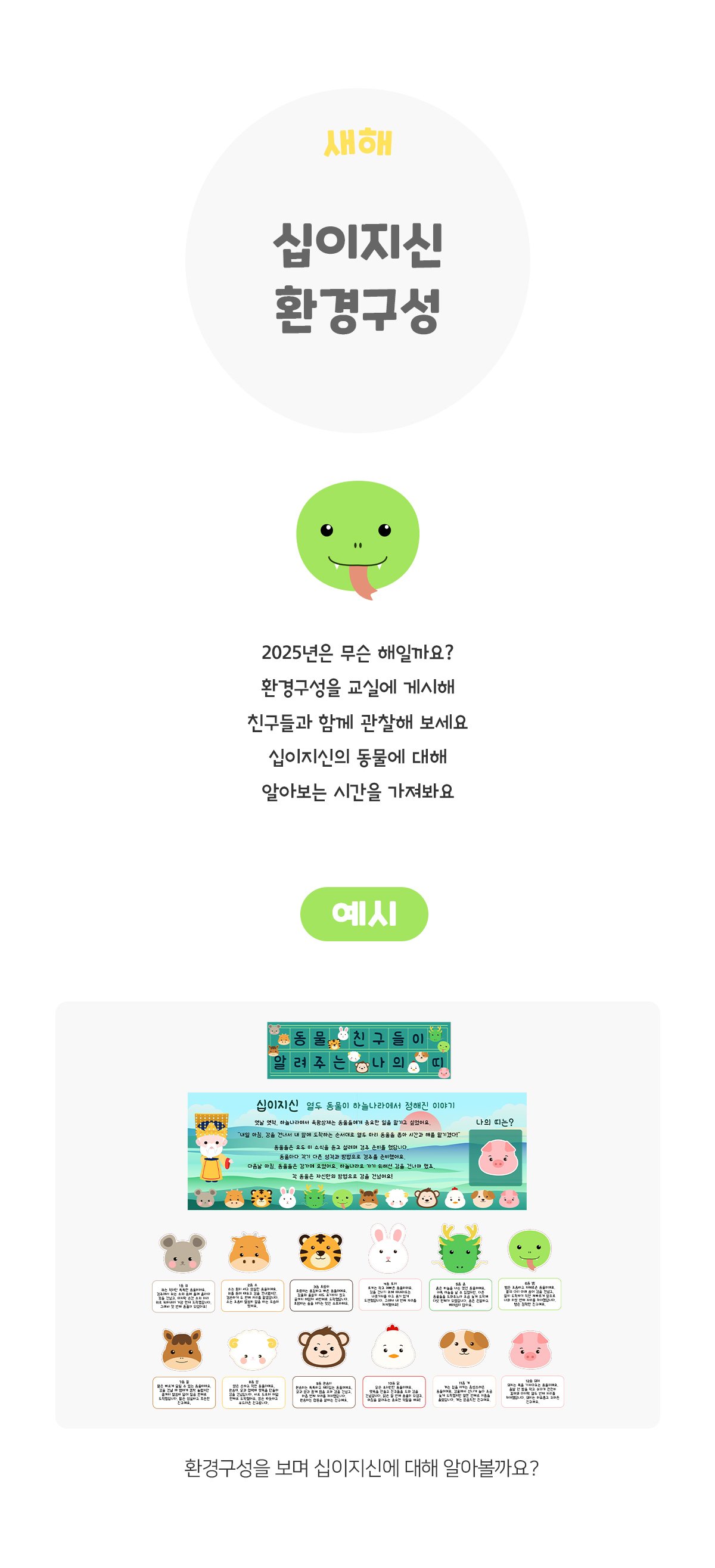 태그 : 십이지신환경구성, 새해, 신년, 2025, 뱀띠, 푸른뱀해, 을사년, 열두띠, 열두띠이야기, 십이지신, 십이간지, 쥐, 소, 호랑이, 토끼, 용, 뱀, 말, 양, 원숭이, 닭, 개, 돼지, 동물, 새해활동, 새해놀이, 새해도안, 새해자료, 새해게시판, 새해환경판, 새해환경구성, 교실환경구성.
