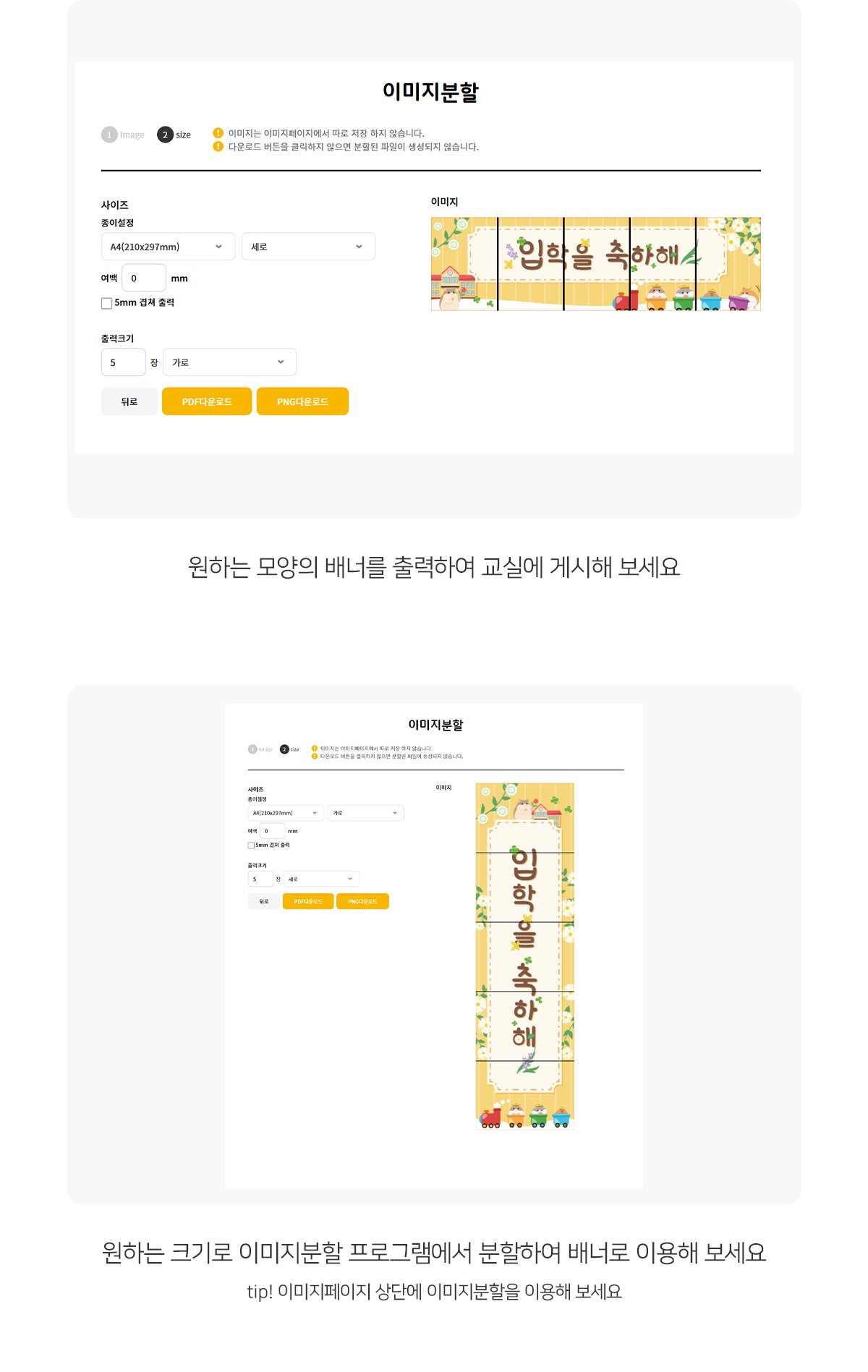 입학을 축하해 가로 세로 배너 만들기