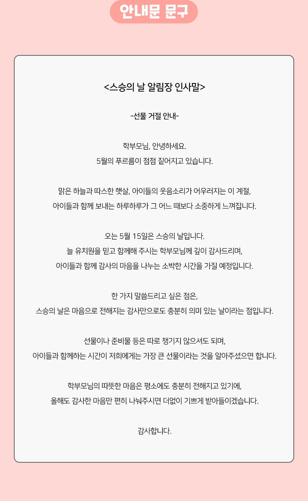 상품명 : 스승의 날 알림장 인사말(선물 거절 안내)3.