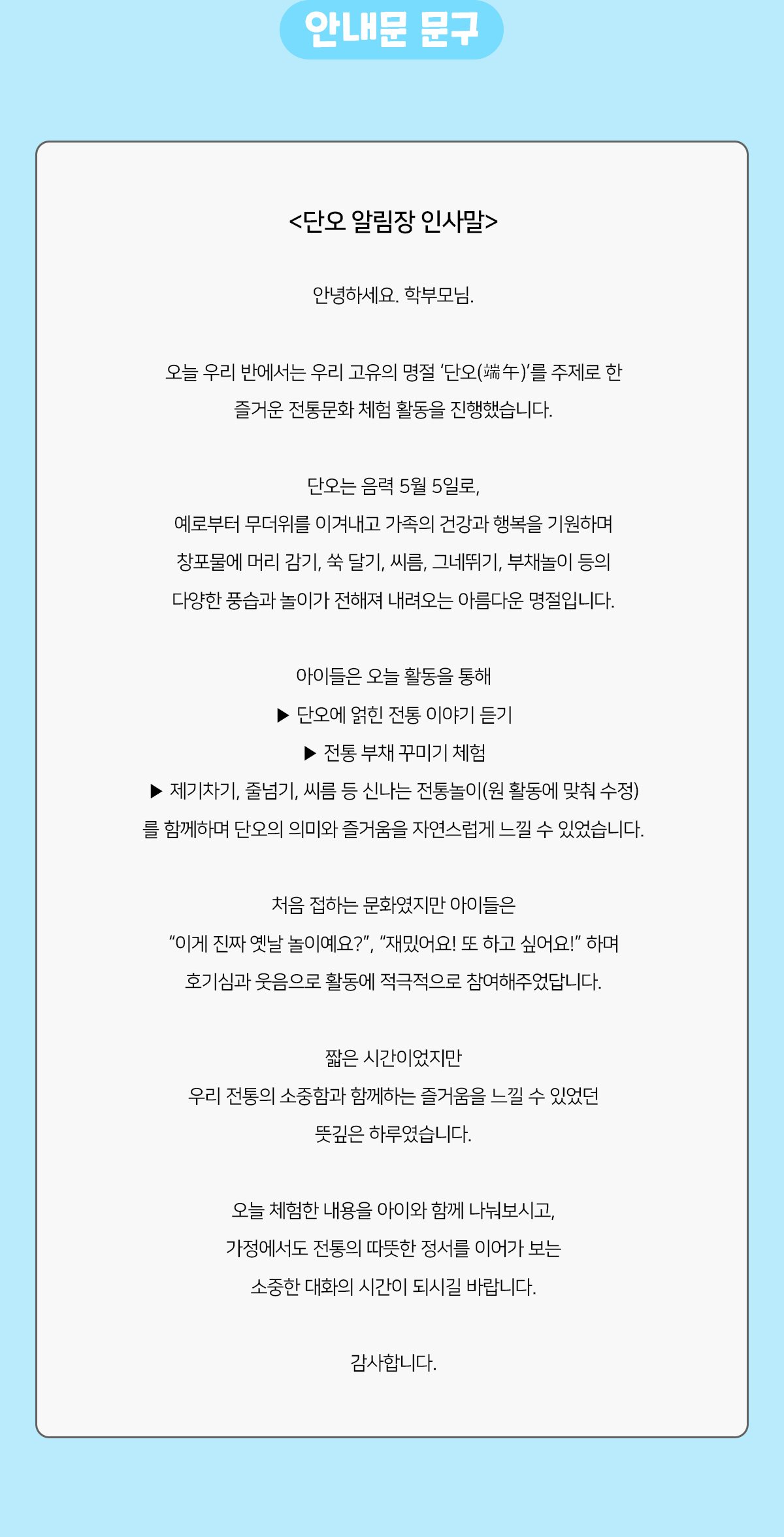 단오(음력5월5일) 알림장 인사말4