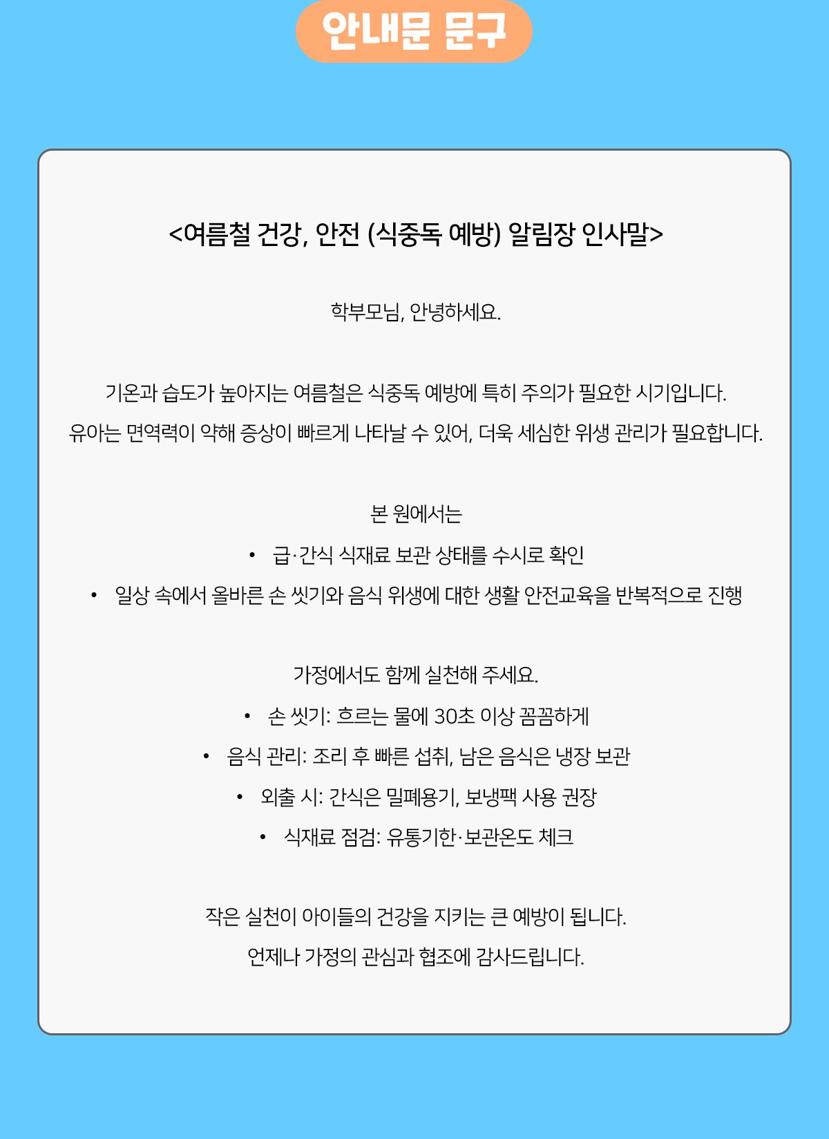 상품명 : 8월 여름철 건강, 안전 (식중독 예방) 알림장 인사말1.