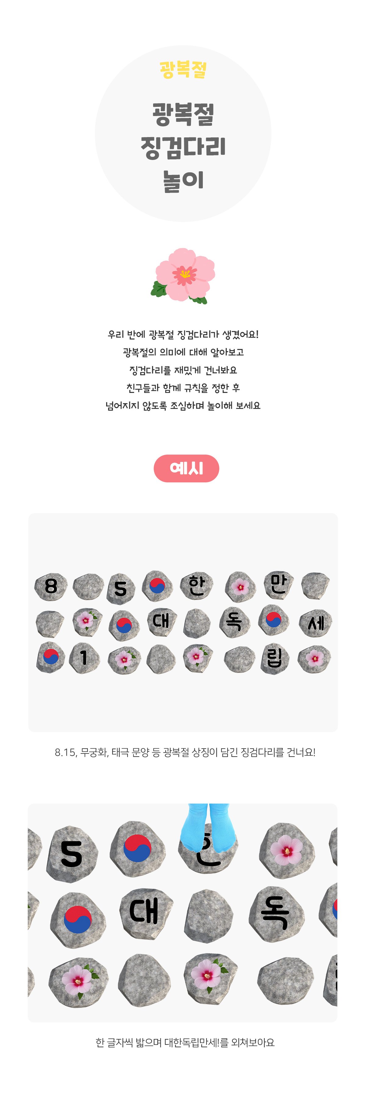 태그 : 광복절징검다리놀이, 광복절, 8월15일, 8.15, 815, 우리나라, 대한민국, 무궁화, 태극기, 애국가, 국경일, 공휴일, 독립, 독립운동, 독립운동가, 광복절활동, 광복절놀이, 광복절도안, 징검다리, 징검다리놀이, 광복절징검다리.