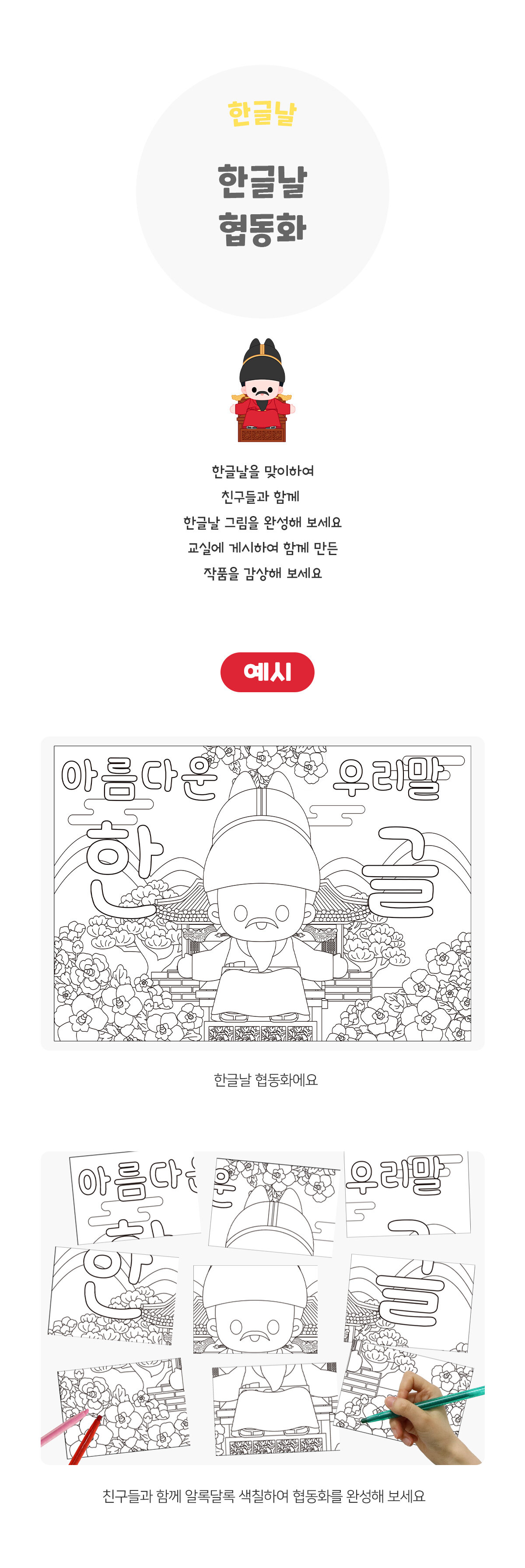 태그 : 한글날협동화, 우리나라, 한글날, 조선글날, 세종대왕, 집현전, 학자, 위인, 훈민정음, 한글, 국경일, 우리나라활동, 우리나라놀이, 우리나라도안, 한글날활동, 한글날놀이, 한글날도안, 10월9일, 협동화, 우리나라협동화, 콜라주, 모자이크, 협동화작품, 미술활동, 한글날색칠.