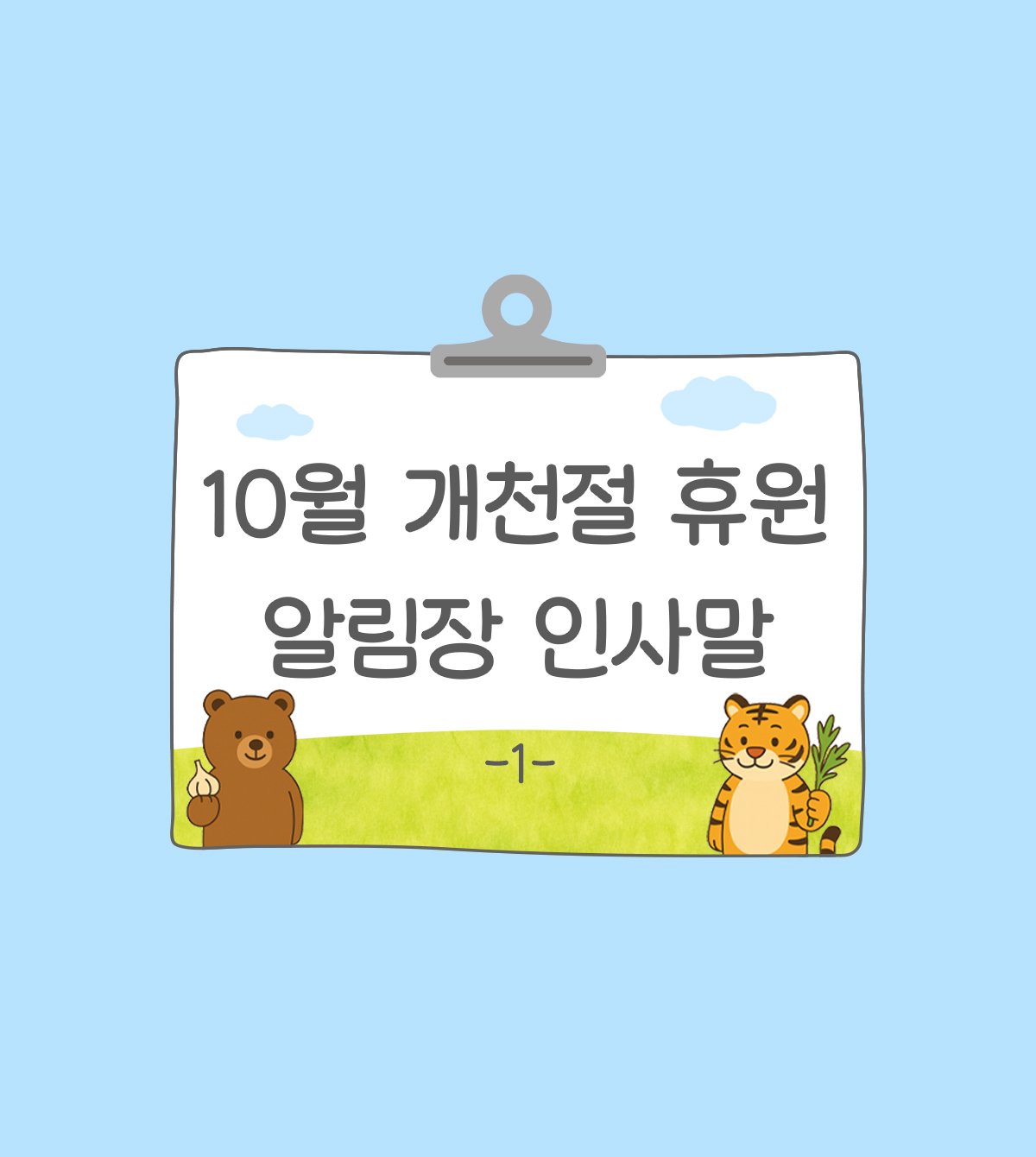 태그 : 개천절알림장인사말, 우리나라, 개천절, 고조선, 단군왕검, 단군신화, 곰, 호랑이, 마늘, 쑥, 우사, 풍백, 운사, 국경일, 10월3일, 개천절알림장, 알림장, 인사말, 알림장인사말, 가정통신문, 가통, 안내, 10월안내, 휴원안내, 국경일안내.