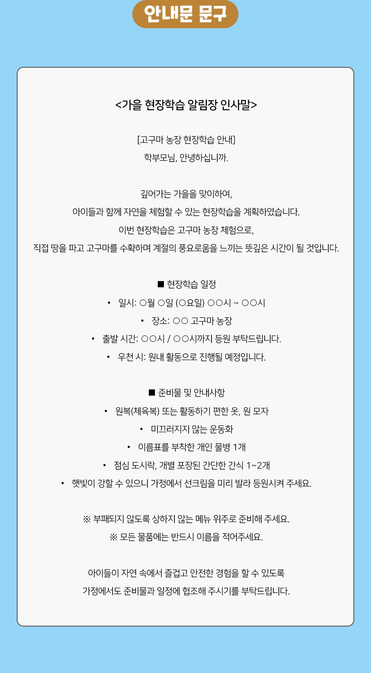 상품명 : 10월 가을 현장학습 알림장 인사말1.