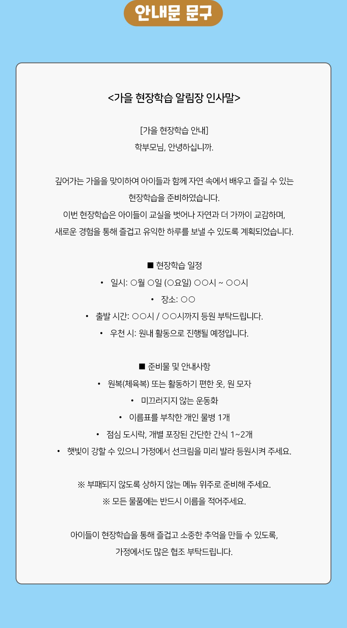 상품명 : 10월 가을 현장학습 알림장 인사말4.
