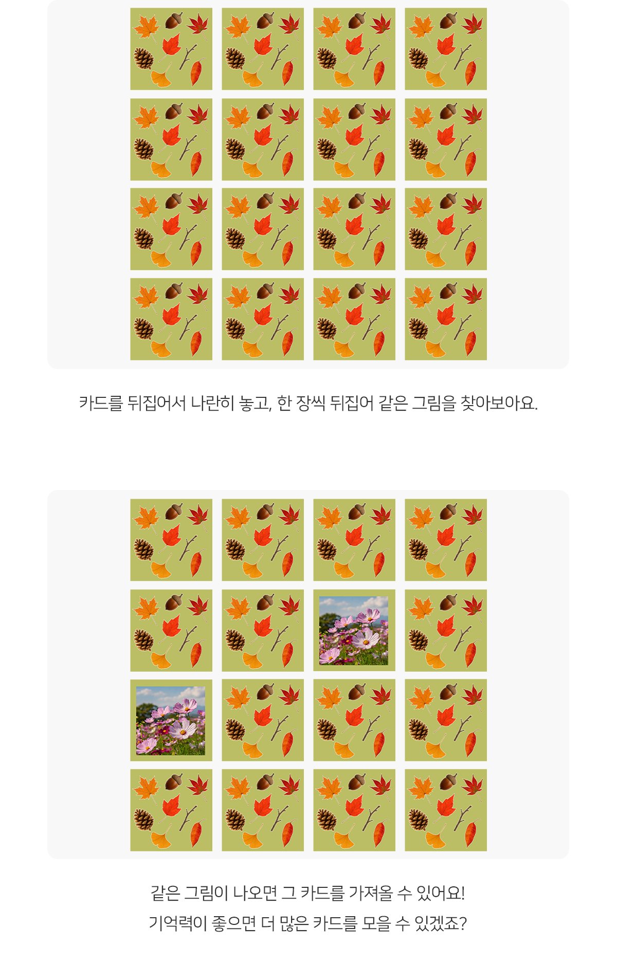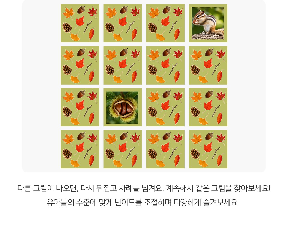 태그 : 같은그림찾기놀이, 가을같은그림찾기, 가을, 계절, 날씨, 낙엽, 자연, 자연물, 단풍, 단풍잎, 은행잎, 열매, 가을열매, 가을숲, 가을숲속, 가을도안, 가을활동, 가을놀이, 가을자료, 같은그림찾기, 메모리게임, 보드게임, 가을교구재, 같은그림.