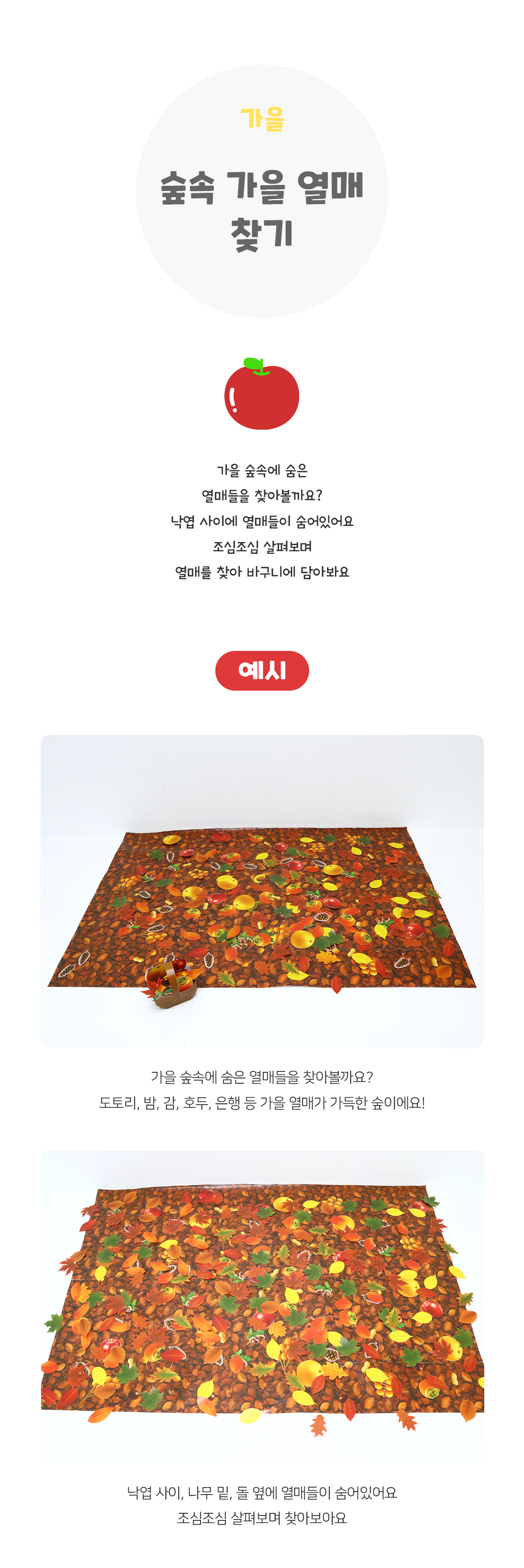 태그 : 숲속가을열매찾기, 가을, 가을숲, 가을열매, 낙엽, 대추, 밤, 호두, 땅콩, 도토리, 은행, 솔방울, 배, 사과, 감, 가을도안, 가을활동, 가을자료, 가을놀이, 열매찾기, 가을열매찾기.