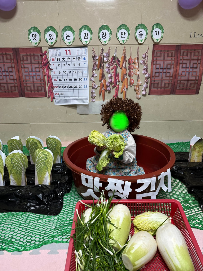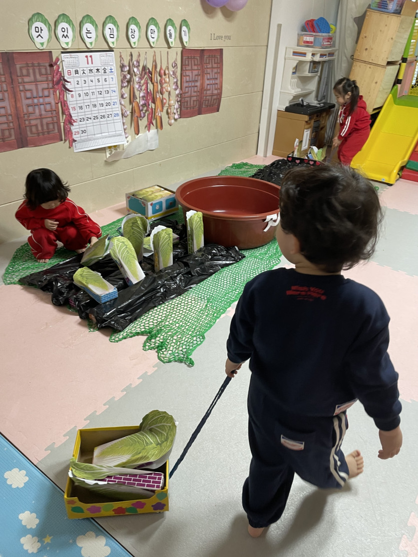 옆에서 막 뽑은 듯이 무와 배추를 자랑스럽게 든 아이들의 모습이 너무 귀엽습니다 XD