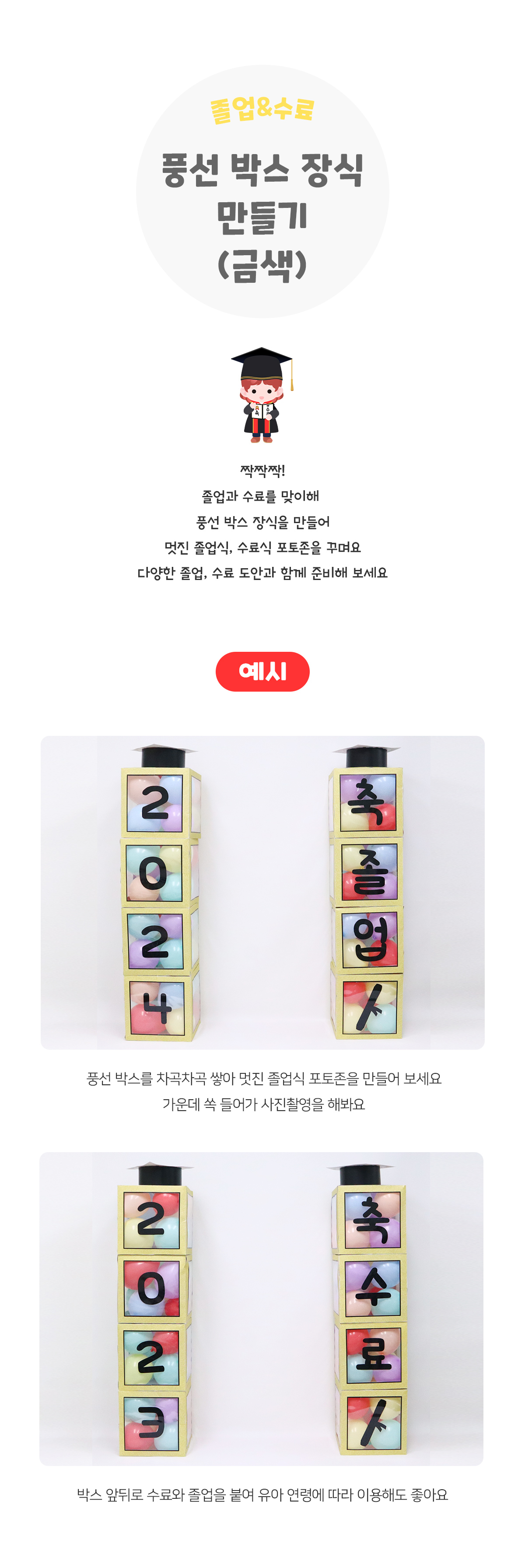 태그 : 풍선박스장식만들기, 금색풍선장식만들기, 졸업만들기, 수료만들기, 졸업, 졸업식, 수료, 수료식, 학사모, 졸업가운, 졸업장, 꽃다발, 즐거웠던우리반, 형님반, 초등학교, 졸업ㅎ애사, 졸업행사, 수료행사, 졸업환경, 음악회, 전시회, 발표회, 연주회, 학예회, 졸업포토존, 수료포토존, 풍선박스장식.
