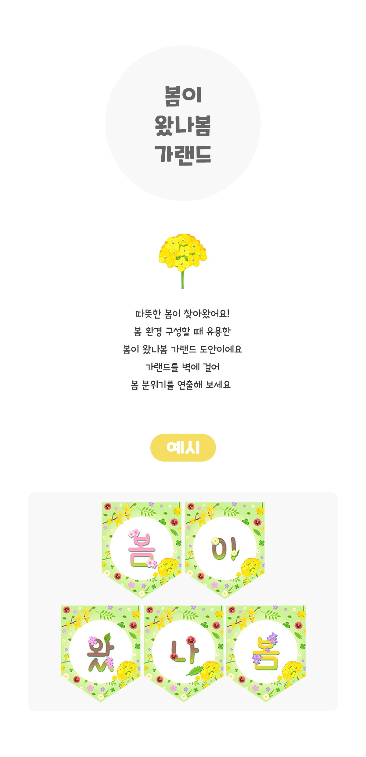 태그 : 봄이왔나봄가랜드, 봄, 봄활동, 봄환경, 봄놀이, 봄꽃, 봄과동식물, 봄게시판, 봄환경판, 봄환경구성, 봄꾸미기, 봄가랜드, 민들레, 복사꽃, 유채꽃, 팬지, 튤립, 장미, 개나리, 데이지, 네잎클로버.
