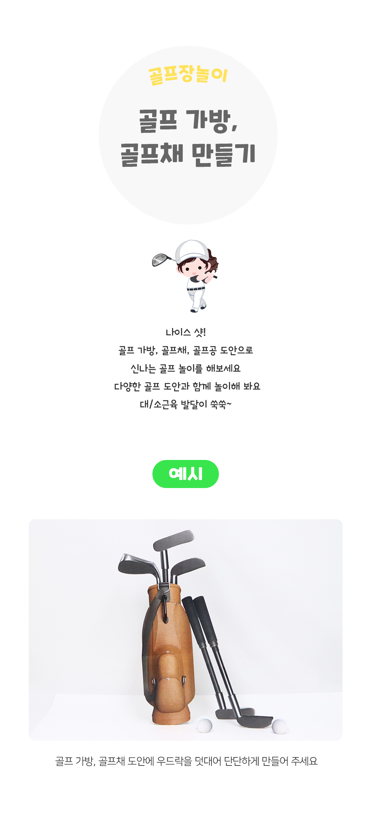 태그 : 골프가방, 골프채만들기, 골프가방만들기, 골프, 골프장, 골프놀이, 골프장놀이, 골프대회, 어린이골프대회, 스포츠, 운동, 신체놀이, 신체활동, 올림픽, 골프장만들기, 골프모자만들기, 미니올림픽.
