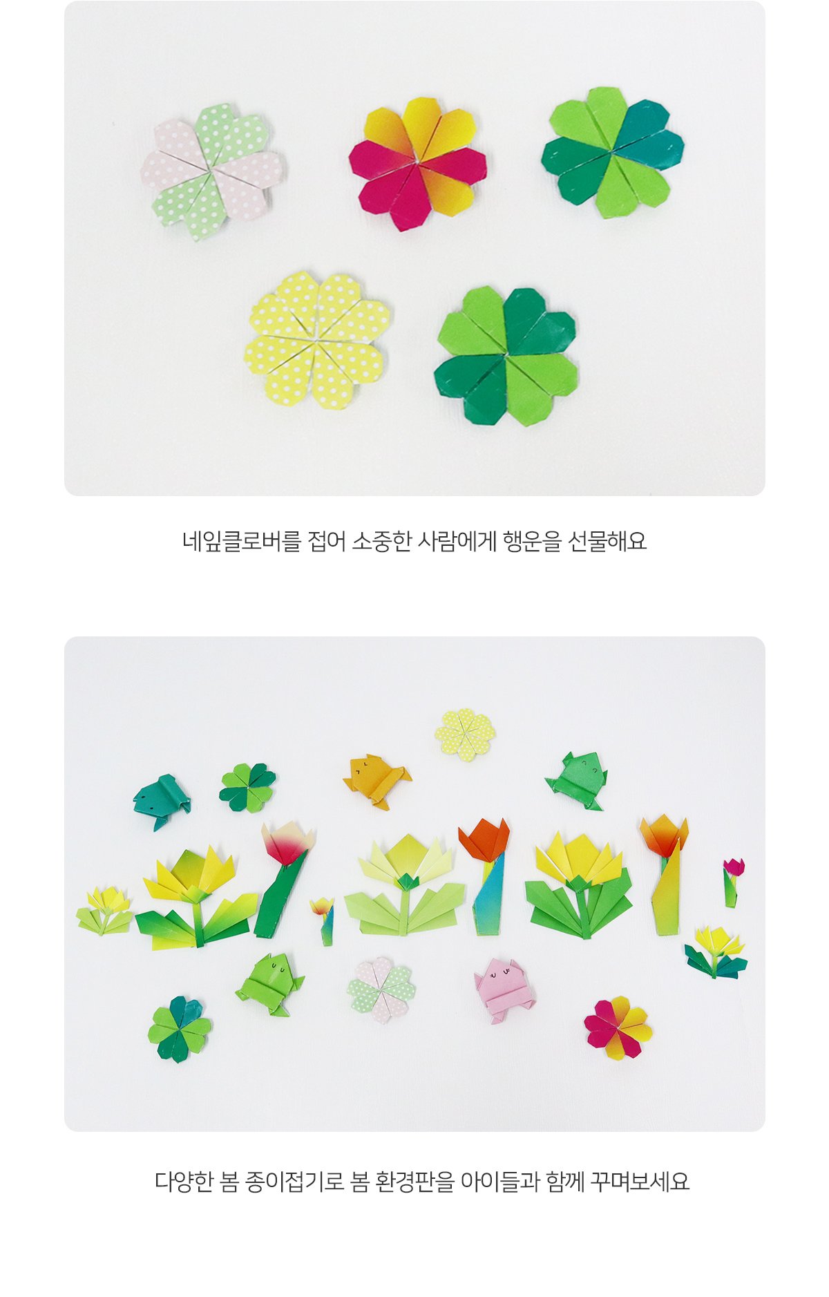 태그 : 네잎클로버종이접기, 봄, 봄활동, 봄환경, 봄놀이, 봄과동식물, 자연, 자연물, 봄꽃종이접기, 봄종이접기, 환경판꾸미기, 게시판꾸미기, 소근육발달, 색종이접기, 꽃가게놀이, 정원사놀이, 틈새놀이, 봄틈새놀이, 봄만들기.