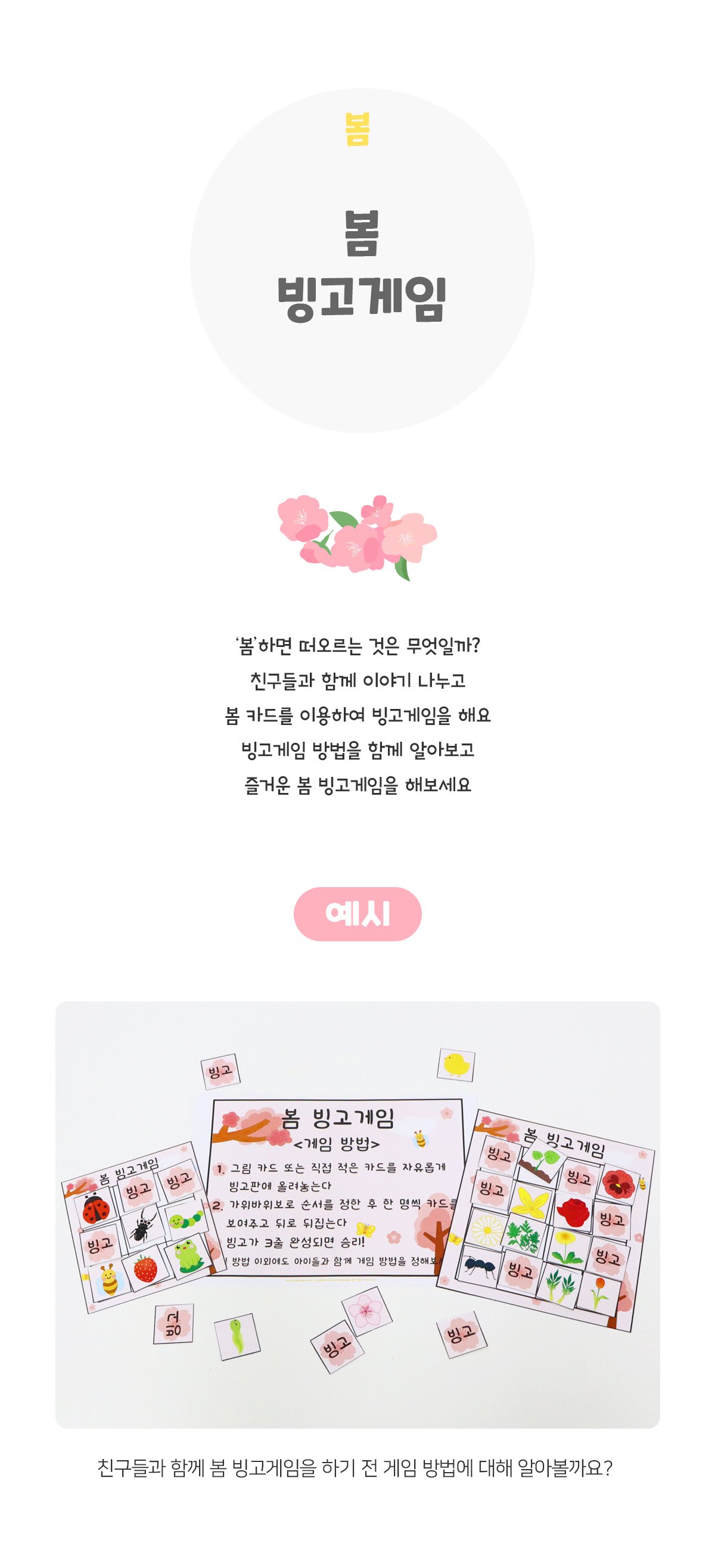 태그 : 봄빙고게임, 봄, 봄활동, 봄환경, 봄놀이, 봄과동식물, 봄꽃, 곤충, 봄나물, 자연, 자연물, 보드게임, 봄교구재, 수조작영역, 두뇌활동, 집중력, 사고력, 빙고.