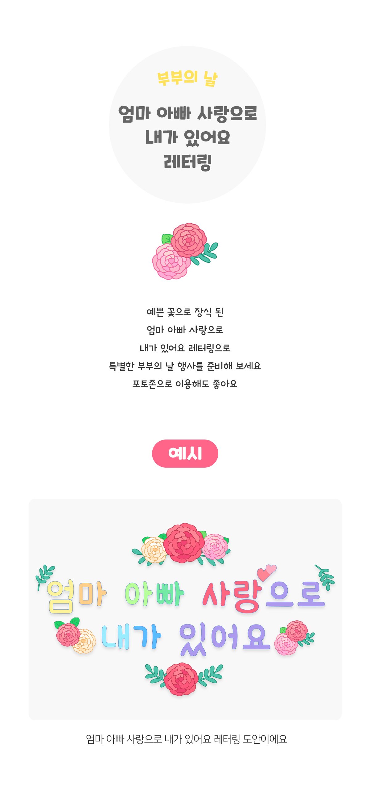 엄마 아빠 사랑으로 내가 있어요 레터링