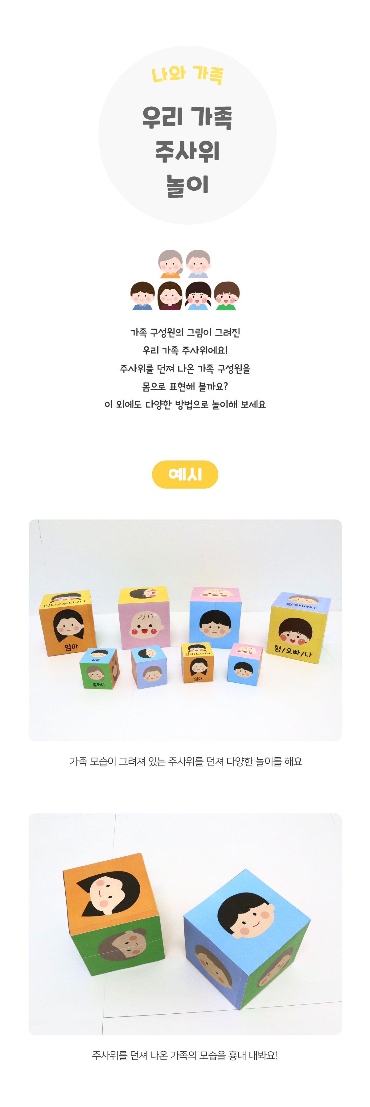 태그 : 우리가족주사위놀이, 나, 가족, 나와가족, 우리가족, 가족구성원, 엄마, 아빠, 할머니, 할아버지, 언니, 누나, 오빠, 형, 동생, 주사위, 주사위놀이, 우리가족주사위, 가족주사위.