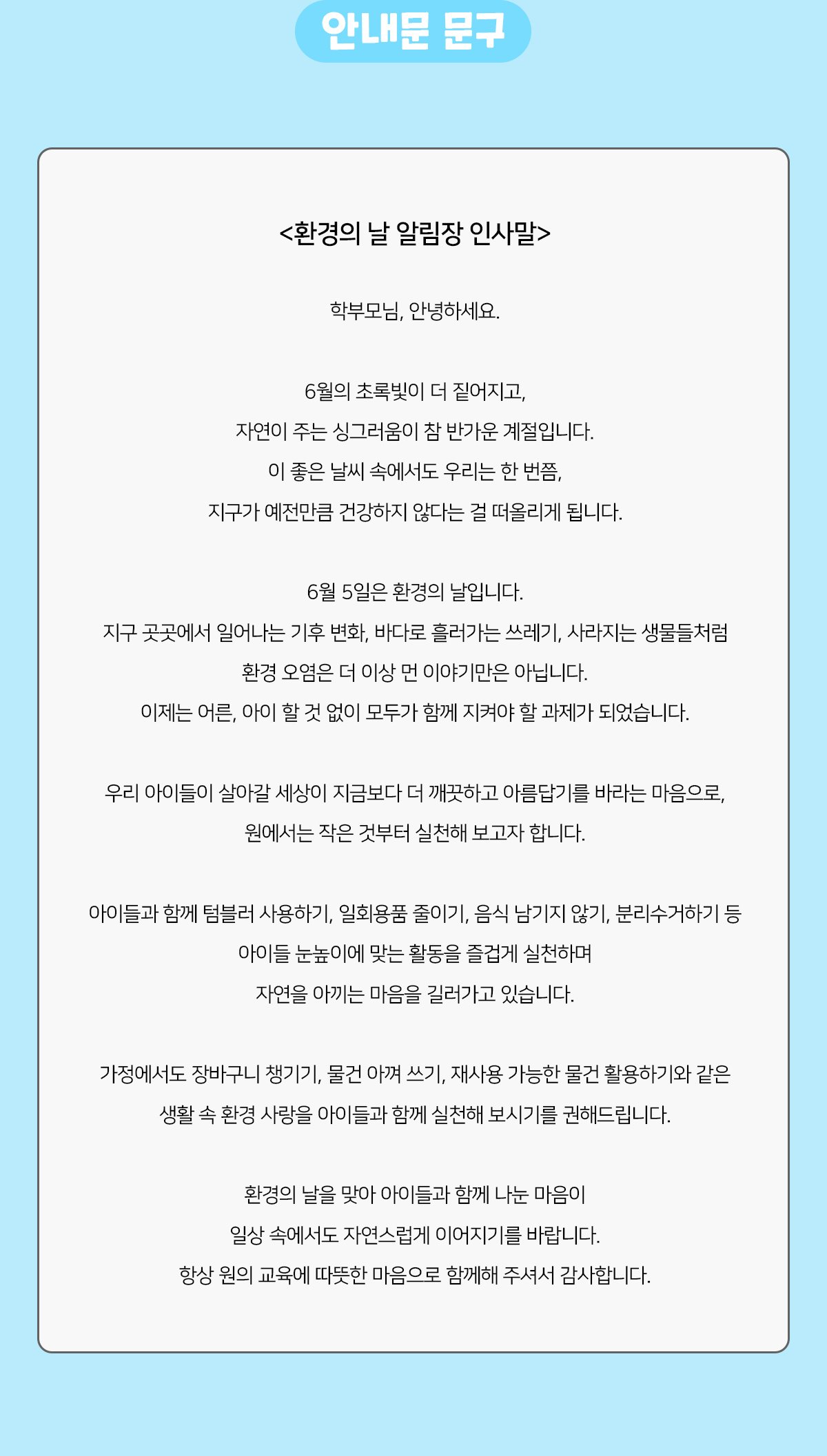 상품명 : 6월 환경의 날 알림장 인사말4.