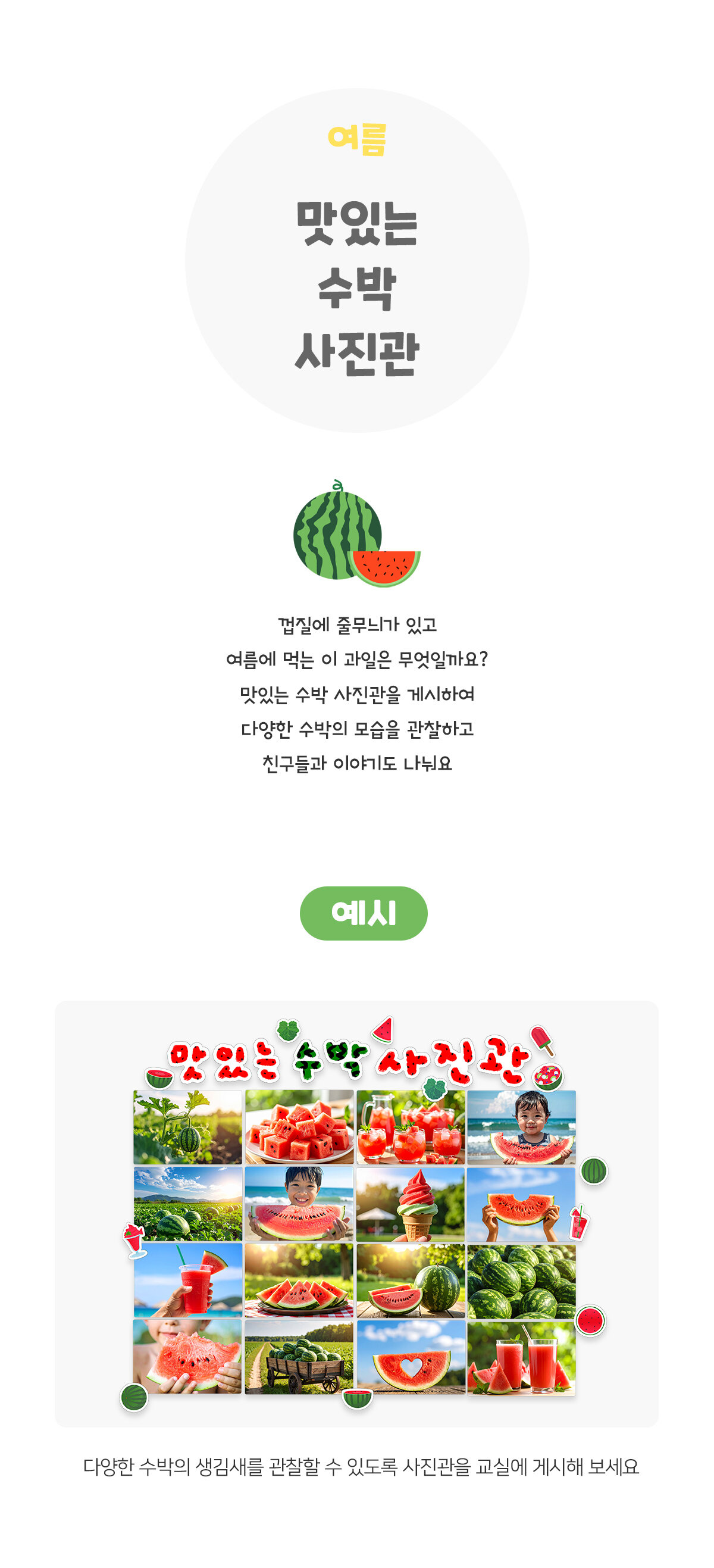 태그 : 맛있는수박사진관, 수박, 여름, 계절, 과일, 여름과일, 음식, 여름활동, 수박놀이, 수박활동, 수박도안, 사진, 사진관, 여름환경구성, 환경구성, 여름벽보, 여름포스터, 여름음식.