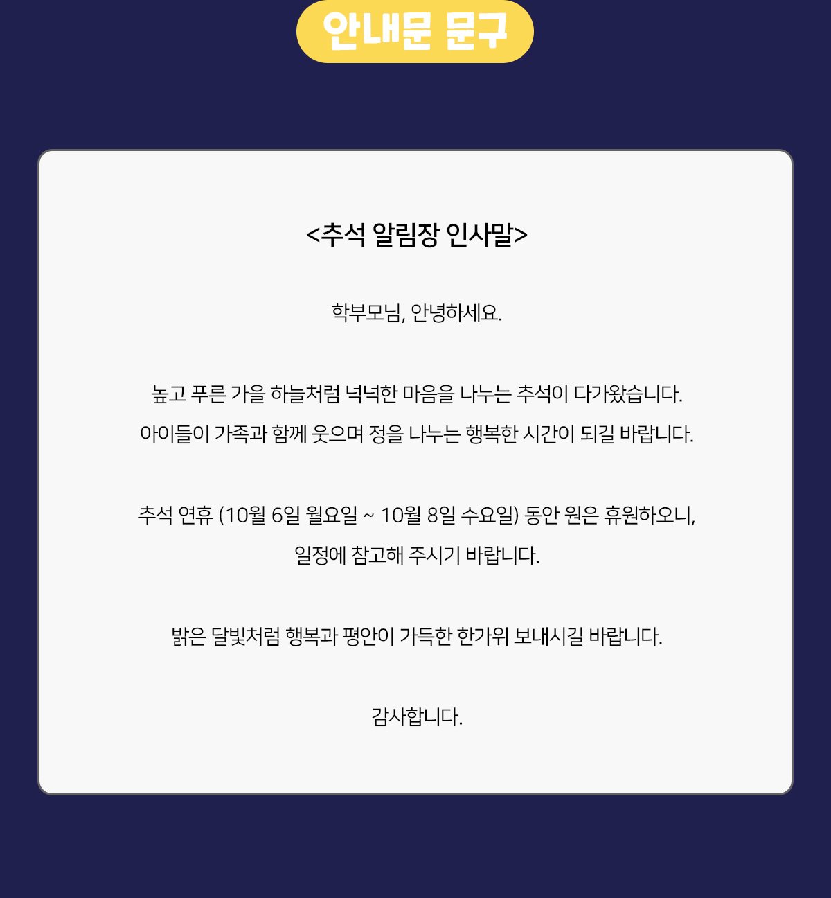 10월 추석 알림장 인사말2