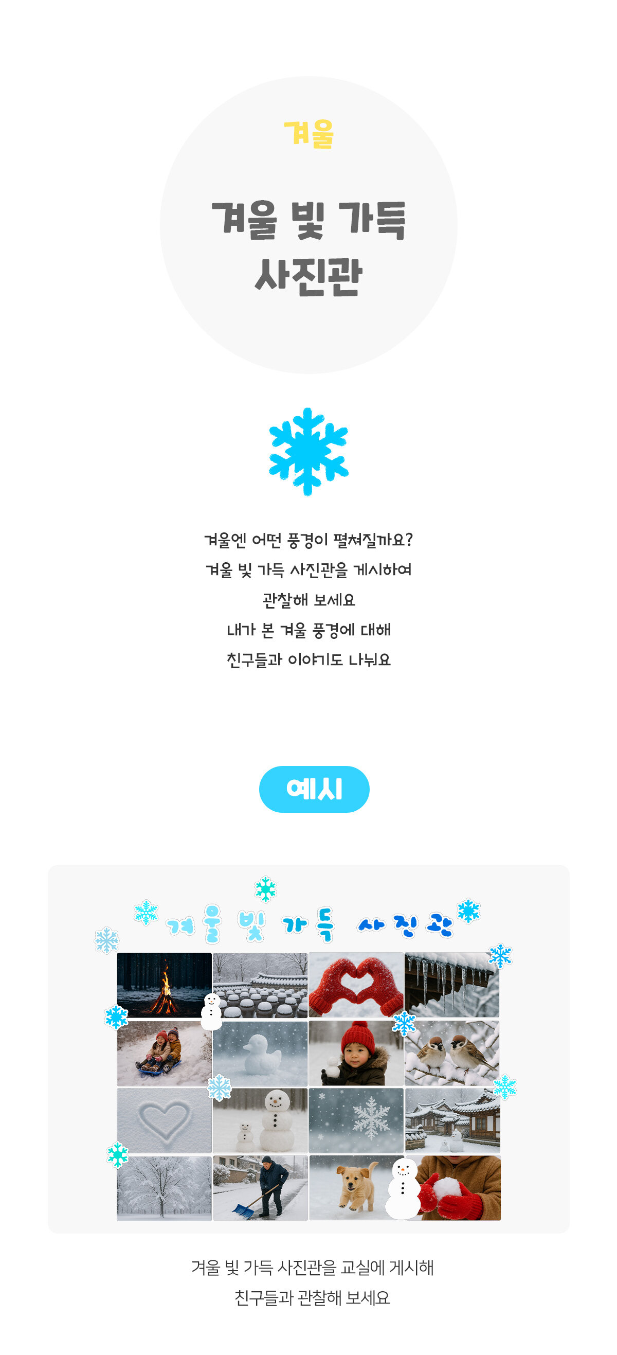 태그 : 겨울빛가득사진관, 겨울, 눈, 겨울활동, 겨울놀이, 겨울도안, 겨울자료, 눈사람, 눈꽃, 겨울풍경, 겨울환경구성, 겨울벽보, 사진, 사진관, 환경구성.