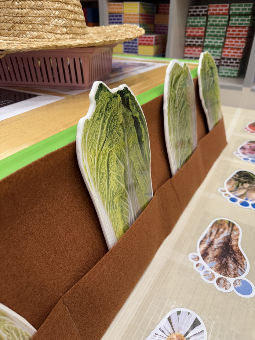 지금은 배추와 무 뽑기가 한창입니다. 교실에 좁아 바닥을 활용하지 못해서 아쉽지만 이미지페이지에서 아이디어를 얻어 작게남아 배추밭과 무밭을 표현해주었어요.