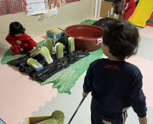 김장철을 맞이하여 김장놀이를 해보았어요. 김장에 필요한 배추밭과 무밭을 만들어 주고 배추뽑기 무 뽑기를 해보았답니다. 끌차와 밀집모자, 고무장갑까지 제공해주니 제법 그럴싸한 농..